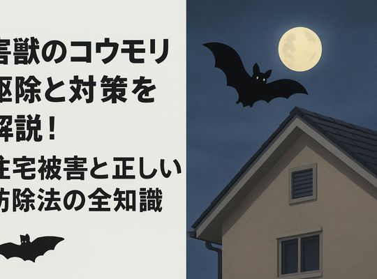 2026/01/06「コウモリが家に侵入し、天井裏からの物音やフンの悪臭に悩まされていませんか?実際、国内の住宅被害報告数は年間1万件以上にのぼり、近年では都市部を中心に被害が拡... -