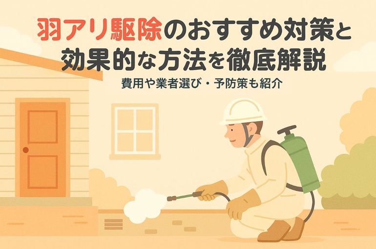 - 羽アリ駆除スプレーは即効性が高いが、根本対策には業者依頼が安心